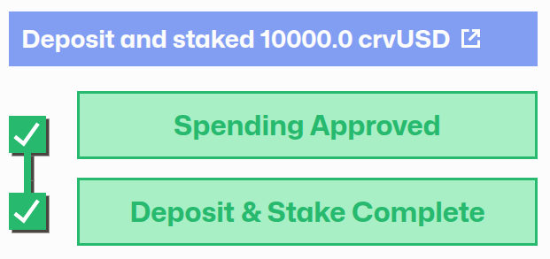 crvUSDwas converted to 9,805 LP tokens, which are currently staked. - We now have